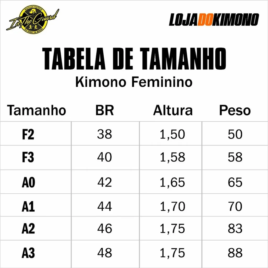 Quimono Jiu Jitsu In The Guard. Duvidas sobre seu tamanho? Temos um guia de tamanhos no anuncio ou se preferir mande uma mensagem com sua altura e peso que te indicaremos o tamanho ideal. Após efetuar sua compra mande uma mensagem com sua altura e peso nos ajudará a confirmei se o tamanho escolhido dará certo, assim evitando transtornos com seu pedido.